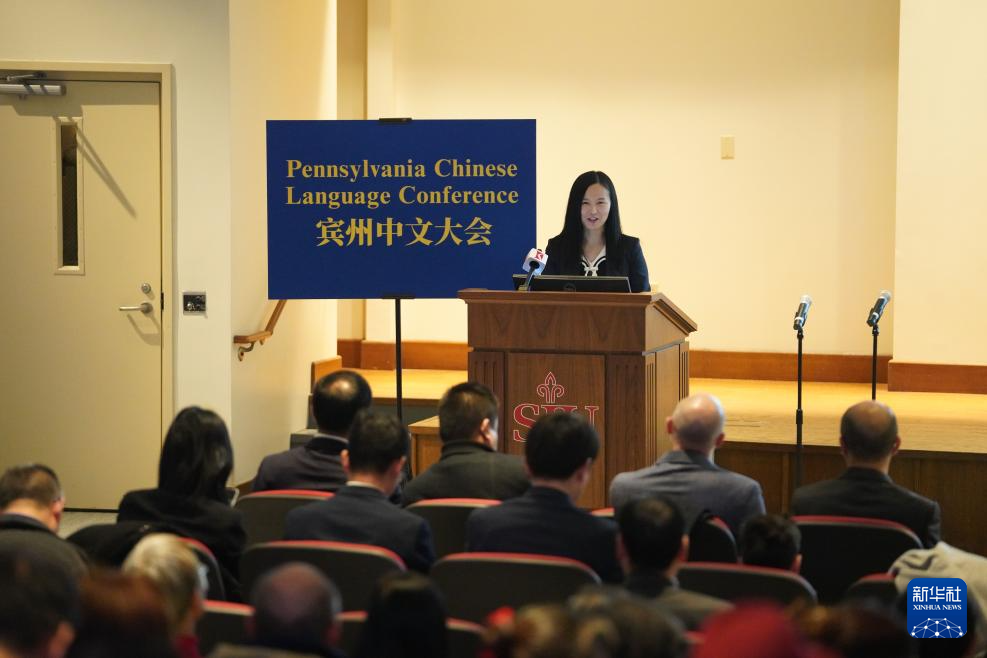 12月6日,在美国费城的圣约瑟夫大学,该校中国项目助理教务长喻娟在美国宾夕法尼亚州首届中文大会上发言。新华社记者 张凤国 摄